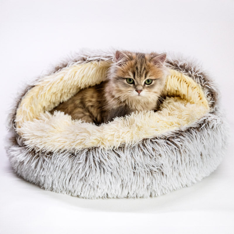 "Min katt både leker och sover i denna skojiga kattbädd. Så bra att man kan variera den i olika former och funktioner."