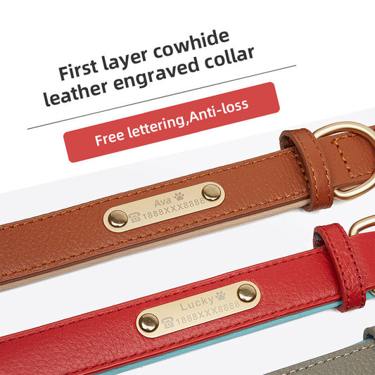 Lyxigt tvåfärgat hundhalsband i läder med personlig gravyr