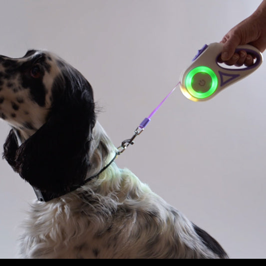Infällbart hundkoppel med dubbla ljusfunktioner