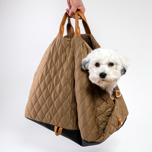 2-in-1 kviltad hundväska som blir till bekväm bilbädd i vattenavvisande nylon