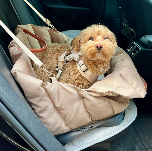 2-in-1 vadderad hundväska som enkelt omvandlas till en bekväm bilbädd