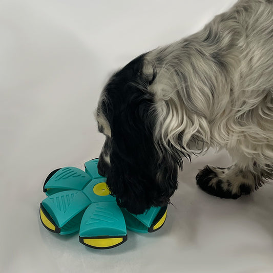 High flying saucer that turns into a bouncing ball – 2-in-1 dog toy